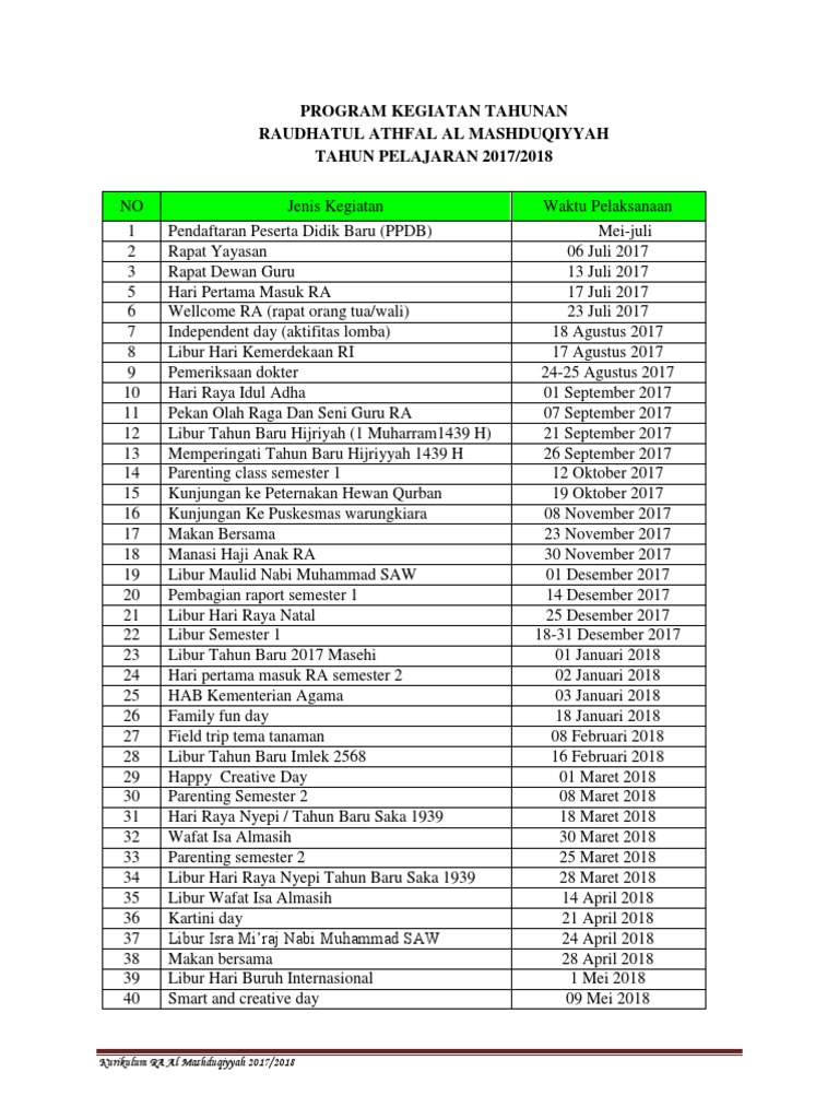 Contoh Program Tahunan Raudhatul Athfal - Contoh Silabus Raudhatul Athfal Masnurul / Contoh proposal pengadaan mebeler raudhatul athfal.. Wisuda santri taman pendidikan alquran. You can save this image to your pc or other gadget for free. Contoh proposal pengadaan mebeler raudhatul athfal. Print(faktor dari, x, adalah:) for i in range(1, x+1): Ibu boleh minta program tahunan dan kurikulum utk tahun ajaran 2017/2018.