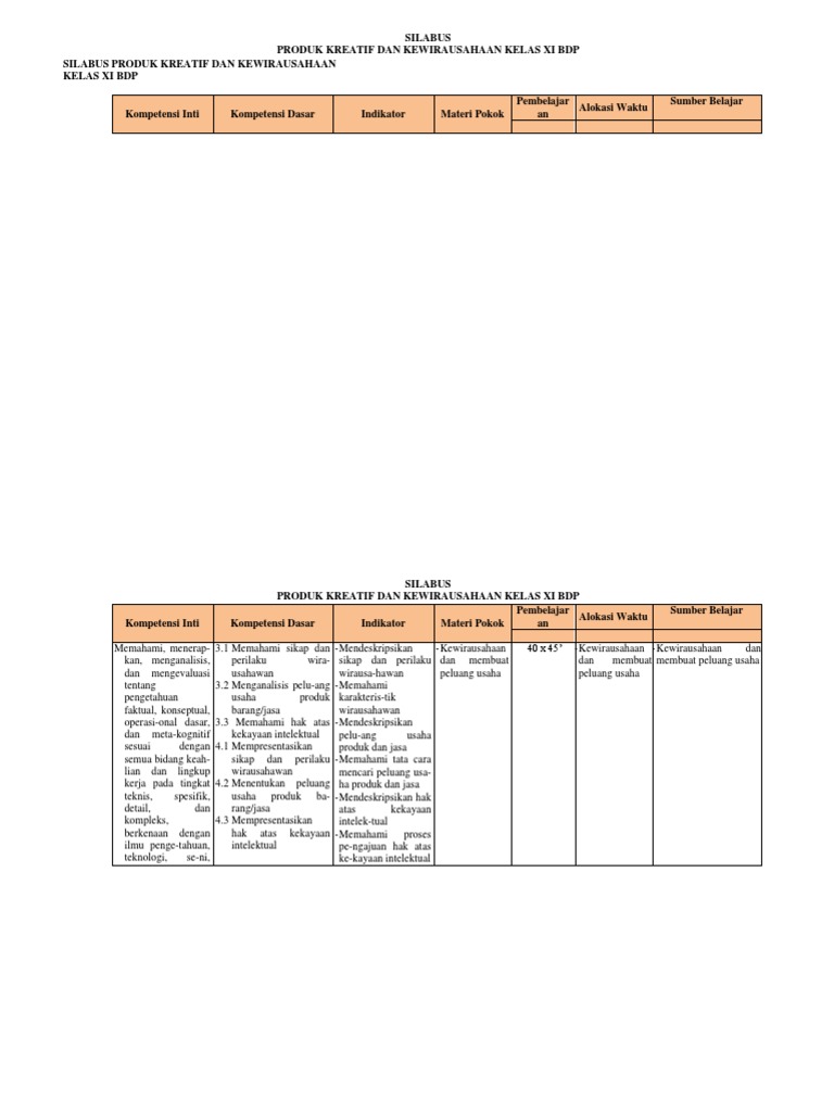 Silabus produk kreatif dan kewirausahaan kelas 11 smk semester.