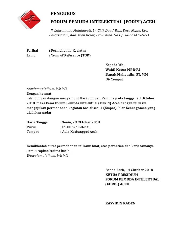 01/departemen/jenis kegiatan/nama organisasi/ix/2009 lamp : Permohonan izin kegiatan hut ri ke 70. Mohon dapat dikabulkan, dimana acara ini . Terkadang sebuah kegiatan yang kita lakukan . Contoh surat permohonan pinjam tempat cilongok, 13 januari 20013 nomor :