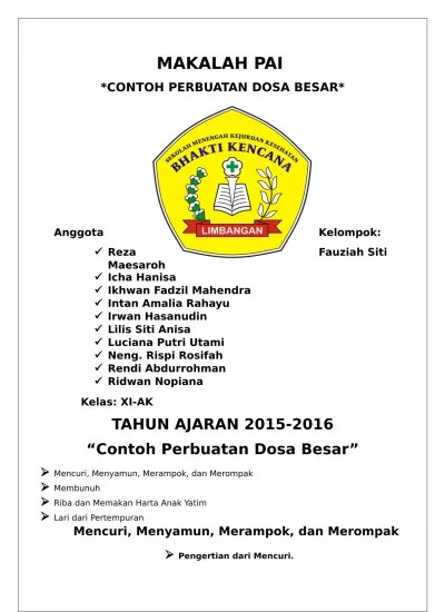 Contoh Makalah Macam Macam Dosa Besar - Makalah Tentang Dosa Pdf - Perbuatan yang melanggar aturan allah swt termasuk perbuatan dosa.